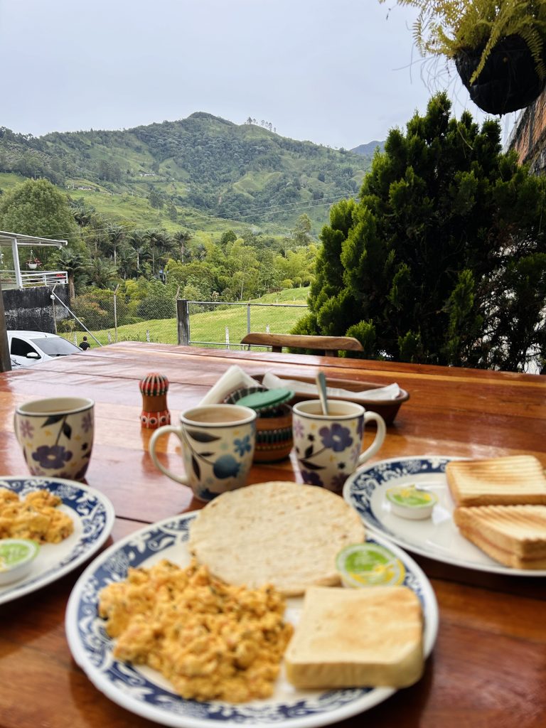 Nos alojamos en el Hospedaje Vista Hermosa, nos costó 2 noches con desayuno, 84€ con desayuno entre las 3 . Es muy bonito, tiene vistazas, el único inconveniente es que está “alejado” del centro. Salento es muy pequeño. Pero tiene bastantes cuestas.